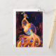 un design coloré d'un hybride phoenix paon en orange vif et bleu sur un arrière - plan noir comme carte postale décorative