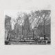 Cette carte postale de voyage présente une photo en noir et blanc de Bryant Park à New York.