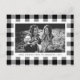 Cette carte de vacances festive est composée d'un arrière - plan plaid blanc et noir et d'une seule photo. Sous la photo il y a de l'espace pour votre nom et l'année. Le dos de la carte postale peut être utilisé pour un message personnel.
