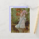 Femme victorienne en lavande fluide tenant bouquet de lilas. Le cadre est dans une véranda. Beaux-arts du peintre français James Tissot.