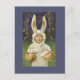 Une belle image vintage d'une fille mignonne en costume lapin de Pâques. Une carte postale parfaite à envoyer à vos amis et proches à Pâques.