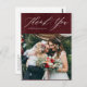 Carte Postale Burgundy Élégant Script Vertical Mariage Merci