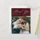 Carte postale Mariage Vertical Script Burgundy Elegant. Carte postale de remerciement élégante avec un script élégant avec un arrière - plan bordeaux aquarelle. Cette carte de remerciements fantaisiste et élégante est entièrement personnalisable. Parfait pour les mariages, diplômes et autres événements. Personnalisez en ajoutant vos photos préférées. Disponible sous forme de carte plate ou pliée.