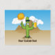 Dessin de cactus souriants avec lunettes de soleil dans un paysage désertique tenant une tasse de bière et donnant des pouces. Texte personnalisé.