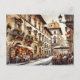 Un cadeau parfait pour les amateurs de voyage et de café. La peinture aquarelle représente magnifiquement un petit café situé dans une ruelle étroite à Florence, en Italie. La scène est encadrée par des bâtiments historiques florentins ornés de pierres complexes et de détails architecturaux de la Renaissance. Les sièges extérieurs du café sont remplis d'un mélange de touristes et de locaux, engagés dans des conversations animées tout en savourant des expressos italiens traditionnels et des pâtisseries. Au-dessus, paniers à fleurs suspendus et laverie croustillante ajoutent à l'atmosphère italienne typiquement urbaine. Le tableau utilise une palette de couleurs douces et terreuses de sienne brûlée, de jaunes chauds et de verts décolorés, rehaussant le charme historique et vibrant de Florence.