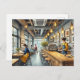 Parfait pour les amateurs de café et de voyage. Le tableau aquarelle saisit le charme cosy et l'énergie vibrante d'un café à Shinsaibashi. Des poutres apparentes et des murs en béton élégants sont chaleureusement éclairés par des ampoules Edison suspendues. Le comptoir en bois récupéré, orné de jarres en verre de haricots à café et d'une machine à expresso étincelante, ouvre la voie à un barista dans un tablier jaune moutarde, préparant habilement le café. À un coin de fenêtre, une jeune femme en chandail de marine apprécie son café gonflable tout en feuilletant un journal. A proximité, un couple de costumes pastel partage des croissants au beurre à une table rustique. Des photos encadrées de fermes de café ornent les murs, se mélangeant harmonieusement à la palette feutrée de marron, gris et jaune doux du café. Grâce aux grandes fenêtres, les rues animées de Shinsaibashi, avec leurs rouges et leurs verts vibrants, ajoutent une ambiance urbaine animée. La composition allie harmonieusement design moderne et chaleur accueillante.