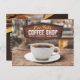 Imaginez l'arôme irrésistible du café fraîchement moulu qui se mélange à la chaleur douce des pâtisseries fraîchement cuites, invitant les clients à s'attarder. Si votre coffee shop dégage cette atmosphère cosy et accueillante, pourquoi ne pas la partager avec le monde par l'intermédiaire d'un carte de visite réfléchi ? Carte postale attrayante pour les coffee shops pour la publicité de leurs produits, le design a des touches de bois rustique, un arrière - plan de coffee shop défraîchi, le tout dans des tons bruns riches. Au verso, vous pourrez choisir votre menu, café, croissants, sandwichs, smoothies, etc., ainsi qu'un bref paragraphe sur votre café, votre emplacement, votre numéro de téléphone, votre courriel et votre site Web. Le top a un badge pour vous de faire de la publicité pour un spécial ou un de vos cafés à succès. Conçue pour capturer l'essence de votre café, cette carte postale permettra non seulement d'élever votre image professionnelle, mais aussi d'inciter les clients à éprouver la chaleur et la saveur que vous offrez.