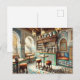 Un cadeau parfait pour les amateurs de voyage et de café. La peinture à l'aquarelle capture l'ambiance vibrante et culturellement riche d'un minuscule café à Fès, au Maroc. L'intérieur présente des murs en mosaïques complexes dans les tons bleu, vert et blanc, créant une atmosphère traditionnelle et accueillante. De petites tables en bois ornées de métal et de tabourets bas surmontés de coussins sont disposées dans un agencement cosy. Un comptoir en bois rustique présente une cafetière traditionnelle en laiton, un plateau de verres à thé à la menthe et un assortiment de pâtisseries marocaines. Le plafond est orné de lanternes qui jettent des motifs de lumière complexes, ce qui renforce la lumière chaude de l'espace. La céramique marocaine traditionnelle et les textiles tissés décorent les murs, ajoutant profondeur et texture. La lumière du soleil filtre à travers une fenêtre voûtée, éclairant les couleurs vives et les détails complexes, résumant l'essence de ce charmant café marocain.