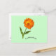 Fleur orange avec gouttes de pluie sur les pétales, texte voûté=Calendula (arrière - plan de couleur)