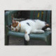 Calico cat allongé sur une chaise Carte postale pour un amoureux des chats **Exemple de photo©Lynnrosedesigns**