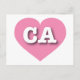 Cette carte postale présente un coeur rose cool contenant les lettres chaudes, blanches et coques supérieures CA, l'abréviation officielle de California, l'état d'or. Le verso de la carte postale est vide, en attendant votre texte customisé ou vos sentiments manuscrits.