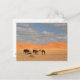 Photographie des dunes de sable d'Erg Chebbi et des chameaux dans le désert du Sahara marocain.