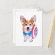 Un mignon corgi portant un costume de Captain America peint à la main en mode sumie avec encre sumi et aquarelle sur papier de riz.