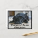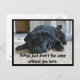 Carte postale de chiot en carlin noir mignonne et paresseuse avec un texte disant : "Les choses ne sont pas pareilles sans vous ici."