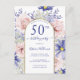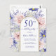 Cette carte postale d'invitation élégante pour les 50 ans présente des fleurs roses et violettes accentuées d'une bordure de paillettes dorées fausses pour personnaliser les détails de votre fête dans un script moderne. Le verso de la carte postale comporte un message que vous pouvez personnaliser. Conçu par Susan Coffey.