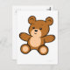 Une carte postale blanche avec un mignon ours en peluche en caricature marron et souriant avec un rembourrage bronzé assis avec ses bras tendus. Ce produit a été formaté pour vous permettre de customiser votre propre arrière - plan.