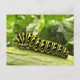 Voici une carte postale avec la chenille du papillon noir Swallowtail (Papilio polyxenes), également connu sous le nom de l'American Swallowtail, Parsnip Swallowtail ou Parsley Worm. Cette espèce vit et dine sur les membres de la famille du persil (y compris les carottes, l'aneth, le fenouil et les panais). Quelle belle créature verte, avec des bandes noires répétées tachetées d'or et de jaune qui créent un motif abstrait intéressant. Celui-ci est sur une feuille entourée d'un feuillage vert intense.