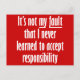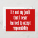 Connaissez quelqu'un qui ne peut pas accepter la responsabilité même du fait qu'ils ne sont jamais responsables ? Faites-le savoir avec ce dicton. Lit "Ce n’est pas de ma faute que je n’ai jamais appris à accepter la responsabilité."