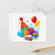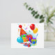 Une carte de vœux d'anniversaire mignonne et heureuse conçue avec des ballons, un chapeau, des fumigènes et des cadeaux