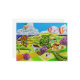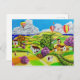 Des couleurs fortes se dégagent de cette scène fantaisiste. Cette peinture à l'huile sur toile étirée est peinte dans le style populaire art naïf/folklorique. Les enfants volent avec leurs cerfs-volants sur le terrain près de leurs maisons de campagne. Un paysage de campagne coloré avec des montgolfières et la mer visible en arrière - plan.