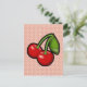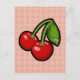 Cerises rouge vif sur un arrière - plan de motif de fleurs roses de style rétro