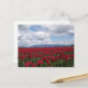 Les premières collines enneigées des Cascades et les nuages blancs bouffants sur un ciel bleu sont un décor parfait pour le champ intense de tulipe rouge à Mt. Vernon, Washington.