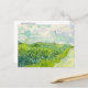 Une carte postale d'art avec le tableau post-impressionnisme Green Blé Fields, Auvers (1890), de l'artiste néerlandais Vincent van Gogh (1853-1890). De beaux champs verts avec des nuages tourbillonnants et un ciel bleu.