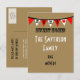 Cette carte postale de changement d'adresse comporte des drapeaux rouges et blancs sur le dessus d'un arrière - plan en carton brun. Les lettres H O M E apparaissent dans les drapeaux pour épeler à la maison, avec un coeur dans un drapeau blanc. Les mots "SWEET HOME" apparaissent ci-dessous, suivis du nom de votre famille, et les mots "a déménagé". Au verso de la carte postale vous pouvez customiser le changement d'adresse avec vos nouvelles informations d'adresse. C'est un changement de typographie vintage amusant de carte postale d'adresse. Copyright henishouseo