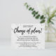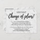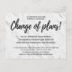 Annoncez le report ou l'annulation de votre cérémonie de mariage, réception, tout ou partie de votre événement avec cette belle carte de faire-part "Changement de plans" changement de carte postale de plans. L'arrière - plan moderne design contemporain en marbre blanc avec écriture de typographie noire est classique et parfait pour tenir vos invités informés.