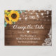 Evénement Reporté Faire-part - Rustic Wood Sunflowers Lace String Lights Changer les plans Cartes postales. (1) Pour plus de personnalisation, cliquez sur le lien "customiser plus loin" et utilisez notre outil de conception pour modifier ce modèle. (2) Si vous avez besoin d'aide ou d'articles correspondants, veuillez me contacter.