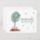 Souhaitez à un ami la plus belle Halloween de cette année avec cette carte postale d'art original mignonne d'un arbre plein de maïs bonbon entouré de jolies lampions ou lanternes et de deux mignons oiseaux pourpres!