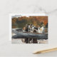 Carte postale avec la peinture à l'aquarelle de l'artiste américain Winslow Homer intitulée Chasse aux chiens en bateau (En attendant le début) (1889). Scène d'automne de plusieurs beagles dans un bateau sur l'eau.