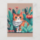 Carte Postale Chat avec Fleurs