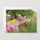 Carte Postale Chat avec géranium