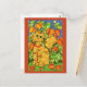 Ce joyeux chat rayé jaune est assis dans une parcelle de plantes de lanternes chinoises exotiques lors d'une agréable nuit d'automne sous un ciel étoilé. Certains des fruits oranges vibrants ressemblant à des lanternes sont tombés sur le terrain herbeux, ainsi qu'une feuille d'automne.