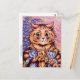 Une carte postale d'art raffiné avec une illustration animale de l'artiste anglais Louis Wain (1860-1939), plus connu pour ses portraits de chat Cette illustration particulière présente une mère chatte surprise au gingembre tenant trois chatons, dont deux bleus, posés contre un arrière - plan de papier peint.