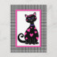 Ce chat fantaisiste est recouvert de coeurs roses et a un cadre rose avec une bordure à carreaux noirs.