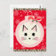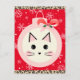 Une carte de Noël de chat mignonne avec un visage de chat sur un ornement rose orné d'un arc et d'un saint. Il y a des flocons de neige dans l'arrière - plan. Une jolie carte postale de Noël pour les amoureux de les chats.