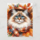 Carte Postale Chat De Poupée En Écharpe D'Automne Avec Feuilles
