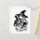 Carte Postale Chat de sorcière et crânes méchants