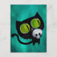 Chat noir effrayant avec crâne. Ce mignon chaton aux grands yeux verts tenant un crâne humain ! Pas éffrayant chat tout ;) Quel cadeau d'Halloween pour les enfants. Ce chat noir est comme Edgar Allan Poe (ou quelque chose du genre ;) mais il ne vous apportera pas de malchance. Je le promets ! Chat d'illustration noir par Madame Colonelle