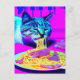 Carte Postale Chat étrange mangeant des spaghetti contenu généra