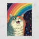 Carte Postale Chat Fluffy dans l'Espace Avec Arc-en-Ciel