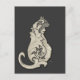 Elégant chat gris, enrobé d'un motif de défilement ornemental Art Nouveau, courbé autour du corps. Art original de Margaret Loftin Whiting.