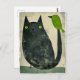 Carte Postale Chat noir avec oiseau vert sur la queue