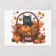 Carte Postale Chat noir avec panier de récolte d'automne