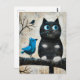 Carte Postale Chat noir effrayé et oiseau bleu sur la branche