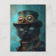Carte Postale Chat noir en costume Steampunk