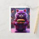 Carte Postale Chat pourpre drôle avec un cheeseburger