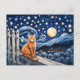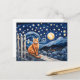 Carte Postale Chat sous l'aquarelle étoilée
